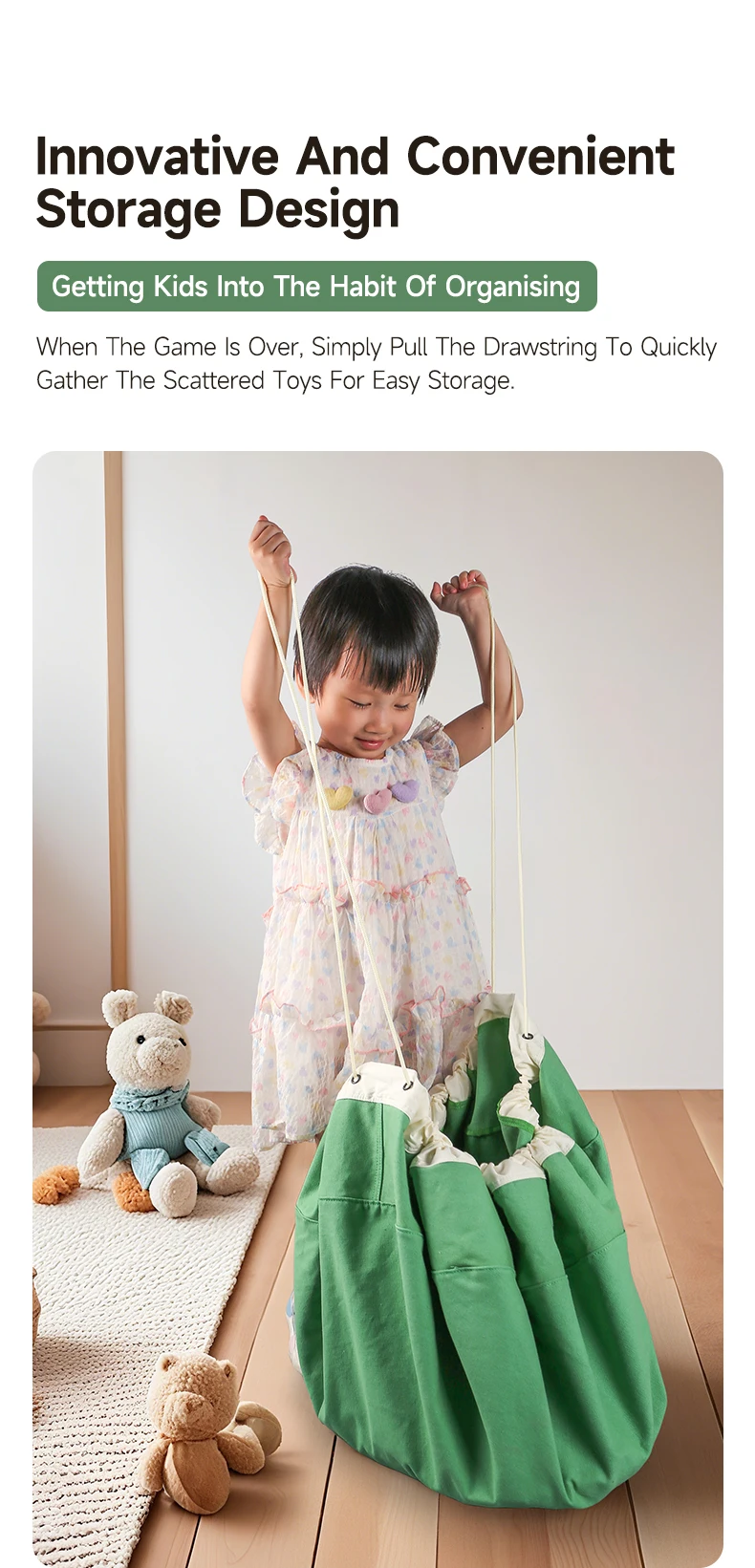 🧸 All-in-One Design – Serves as both a play mat and a toy storage bag.