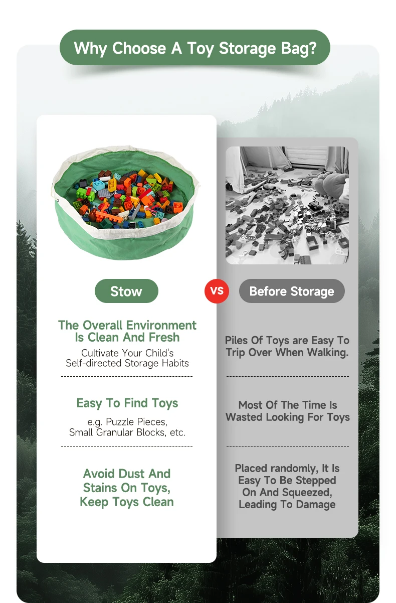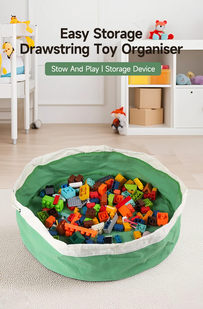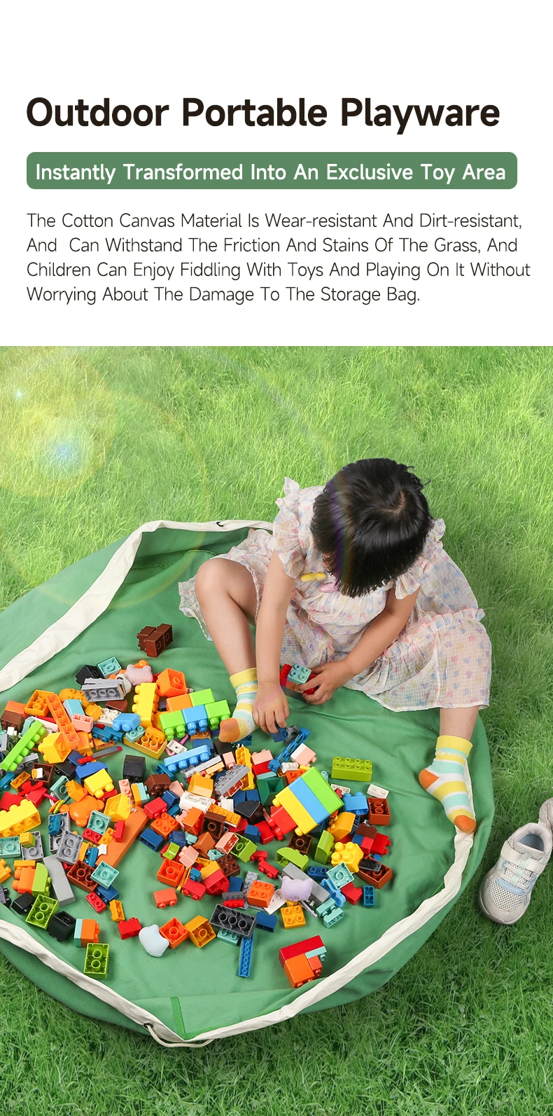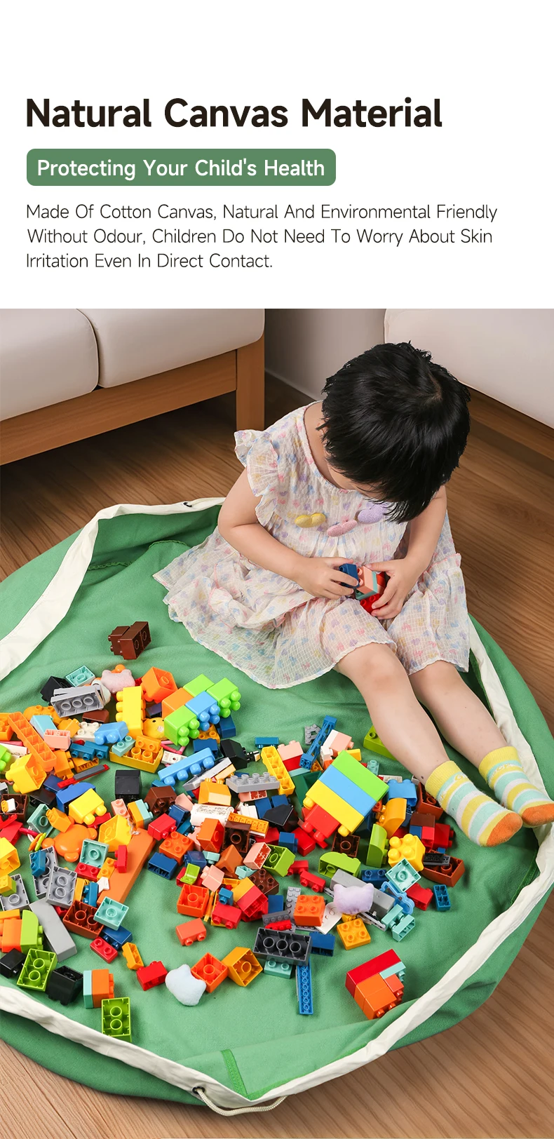Made with durable, lightweight materials, the drawstring bag easily converts from a play area into a portable storage bag, perfect for LEGO, building blocks, and other toys. Ideal for indoor playrooms or outdoor fun, it helps teach kids tidiness and responsibility while providing a safe, comfortable play space anywhere.